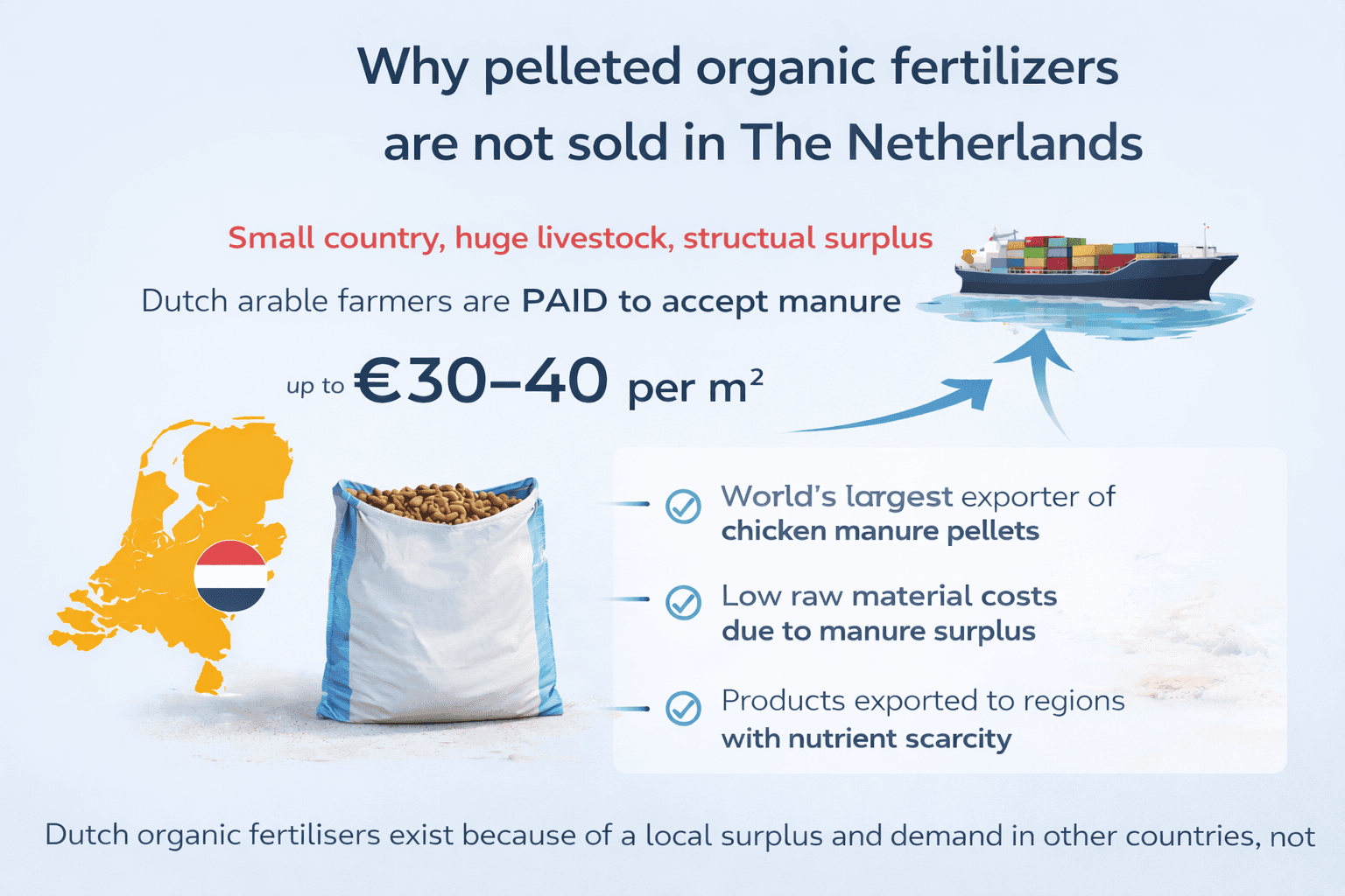 Dutch organic fertilisers exist because of surplus, not because Dutch agriculture lacks nutrients.